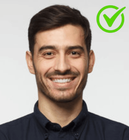 - You have a neutral expression (a slight smile is okay).